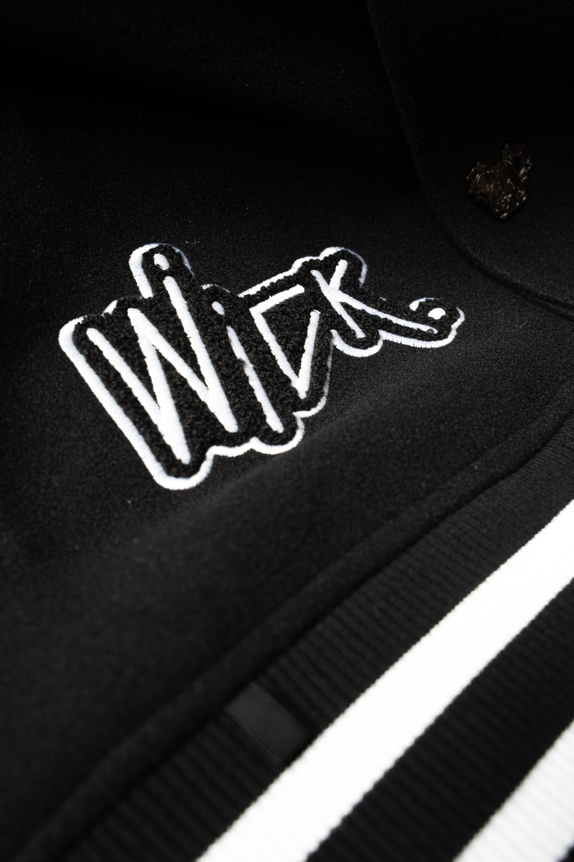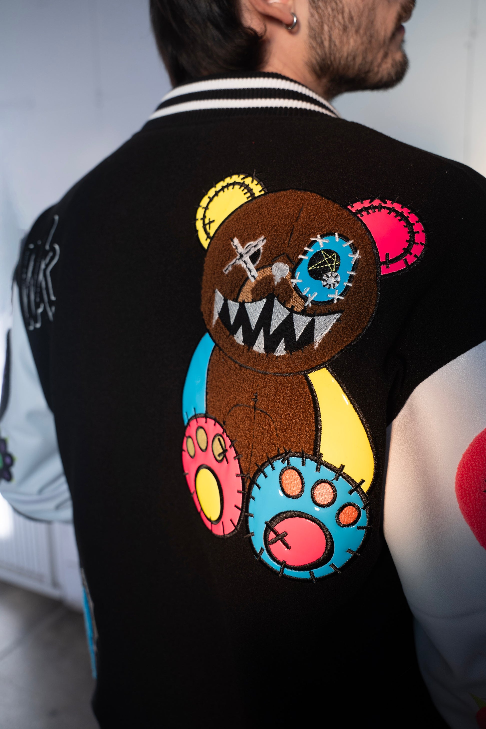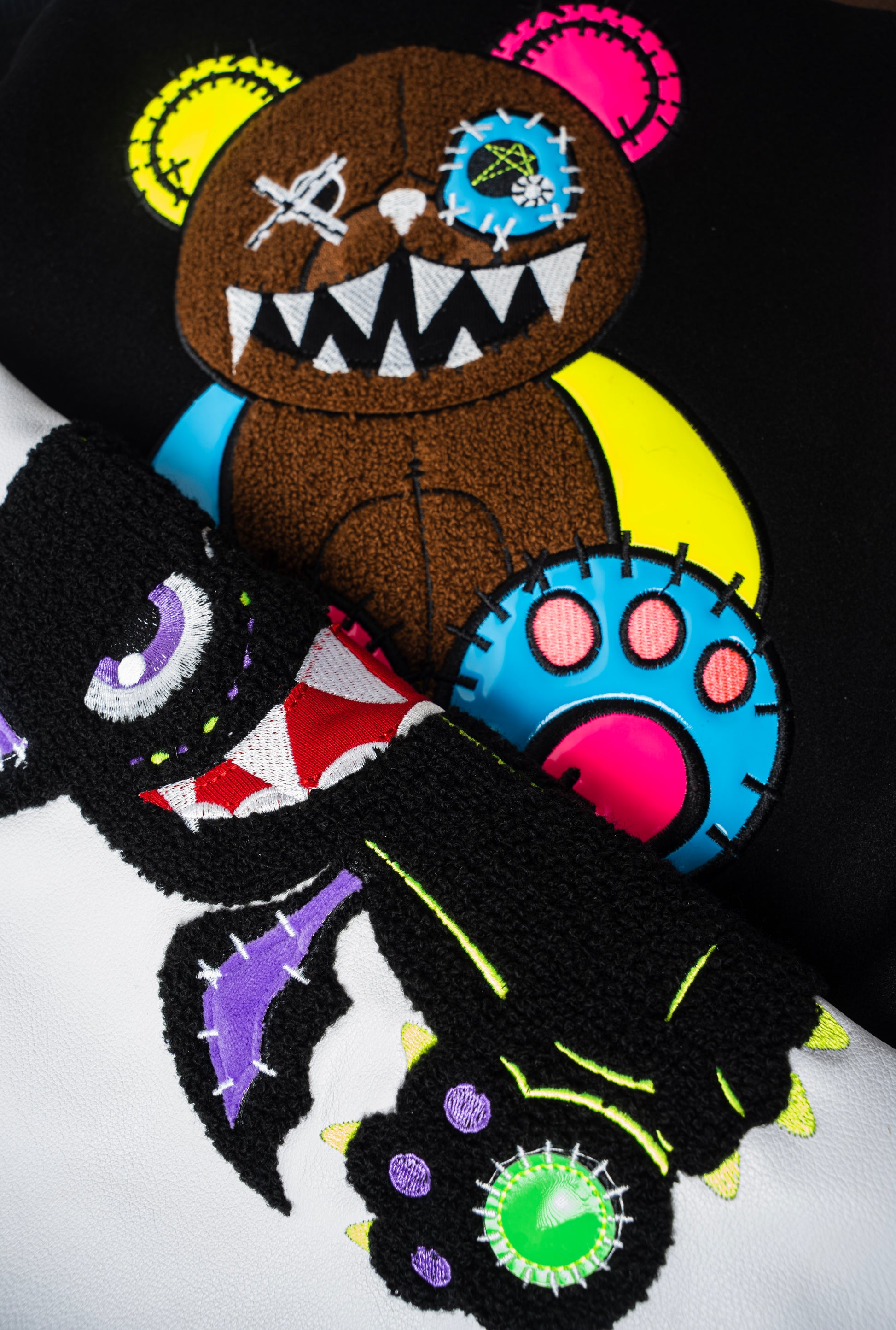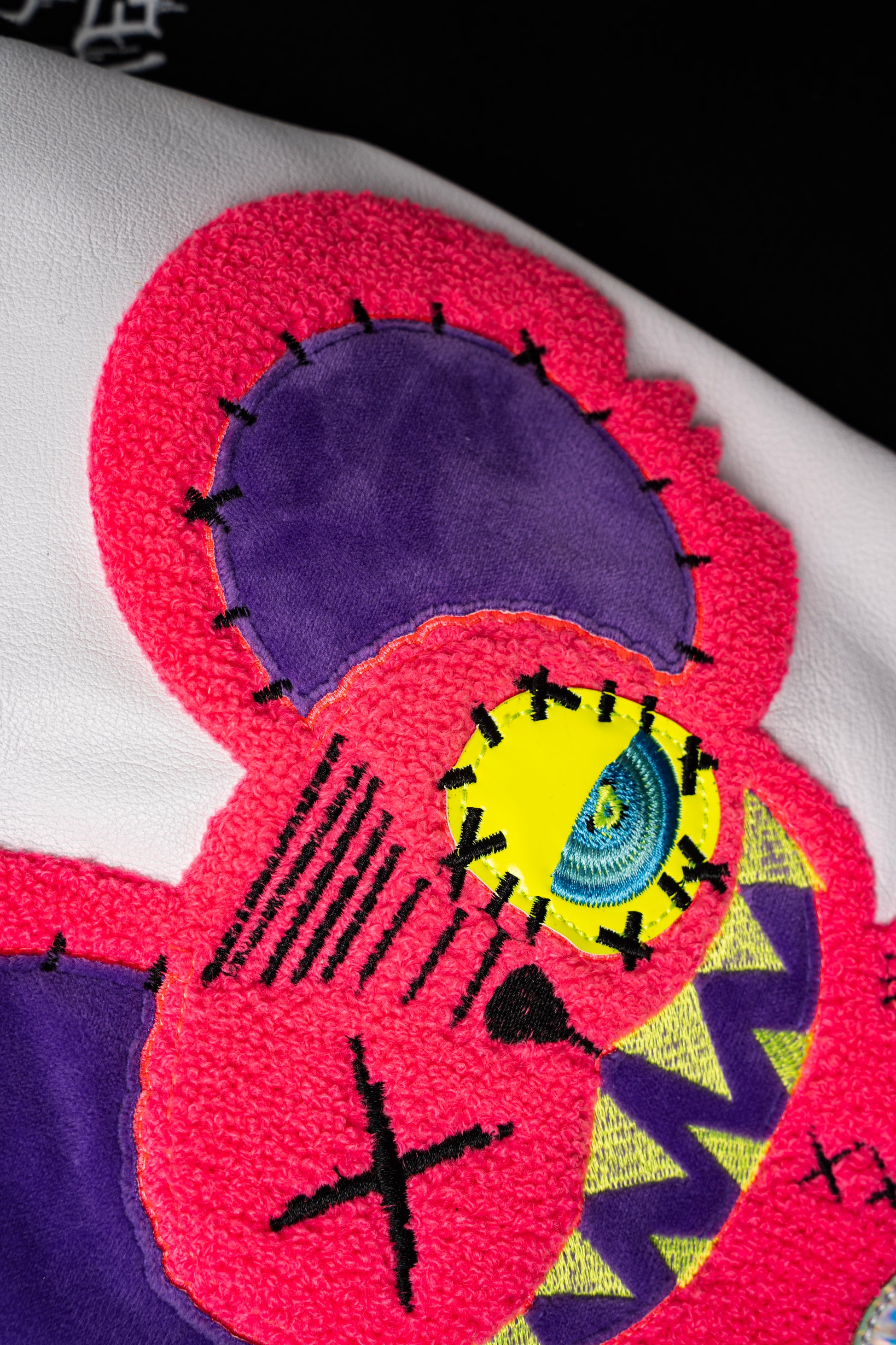 Gefertigt mit hochwertigen Lederärmeln und einem kontrastierenden schwarzen Körper, definiert diese Varsity-Jacke die klassische College-Ästhetik neu durch das unverkennbare Wick Monsters Universum. Jedes Stück ist mit gestickten Kunstwerken, individuellen Monster-Patches und charakteristischen WICK-Details versehen, die die Jacke nachts zum Leben erwecken.