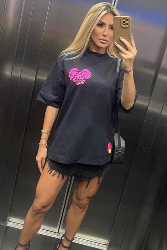 OVERSIZED BLACK BASIC NOTHING BASIC PINK T-SHIRT!