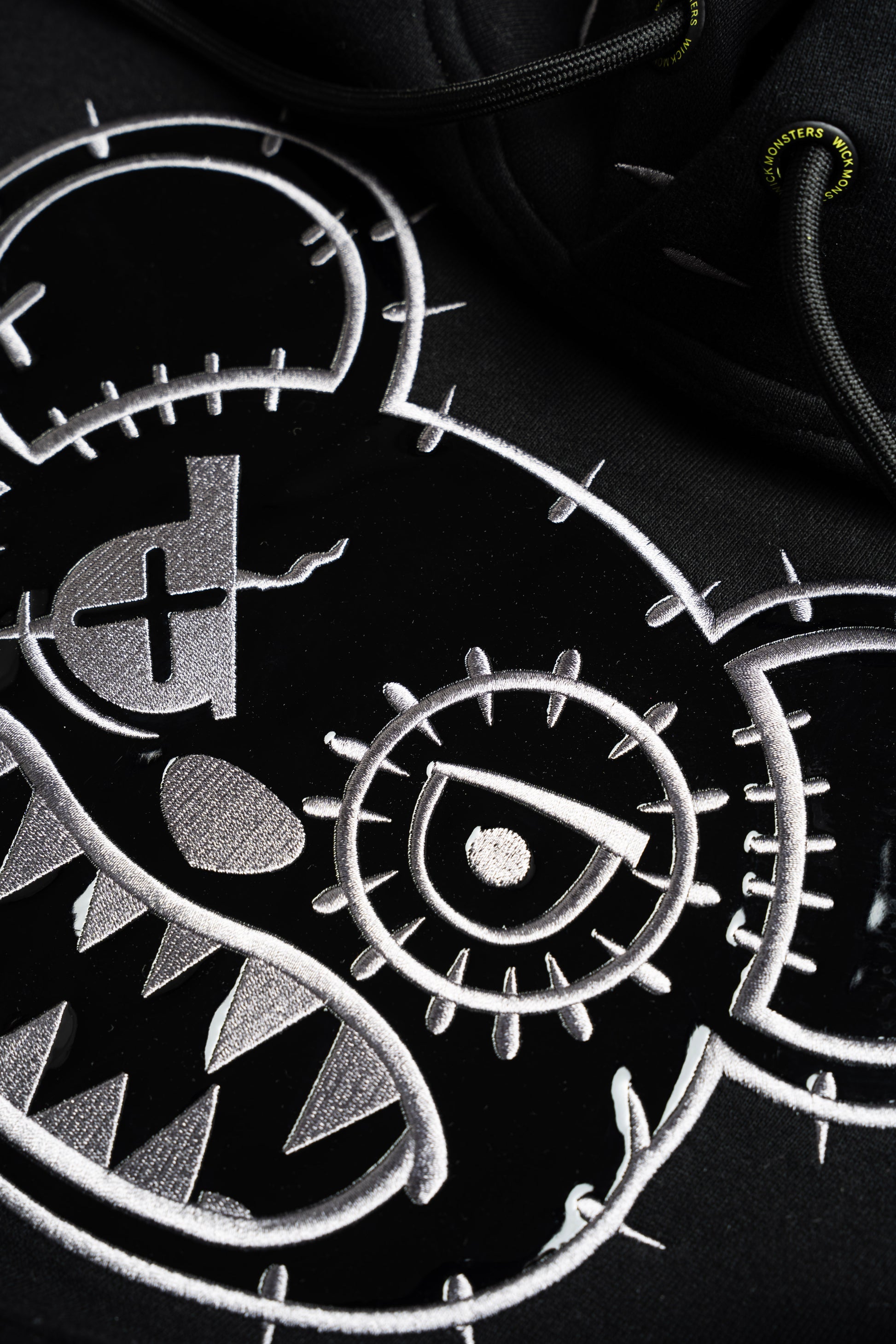 ダークサイドがストリートウェアのラグジュアリーと衝突すると、ブラックアイスが誕生します。存在感のあるヘビーウェイトのオールブラックフーディーで、内なるモンスターを目覚めさせることを恐れない人のために作られました。光沢のあるビニール仕上げで3D刺繍されています。