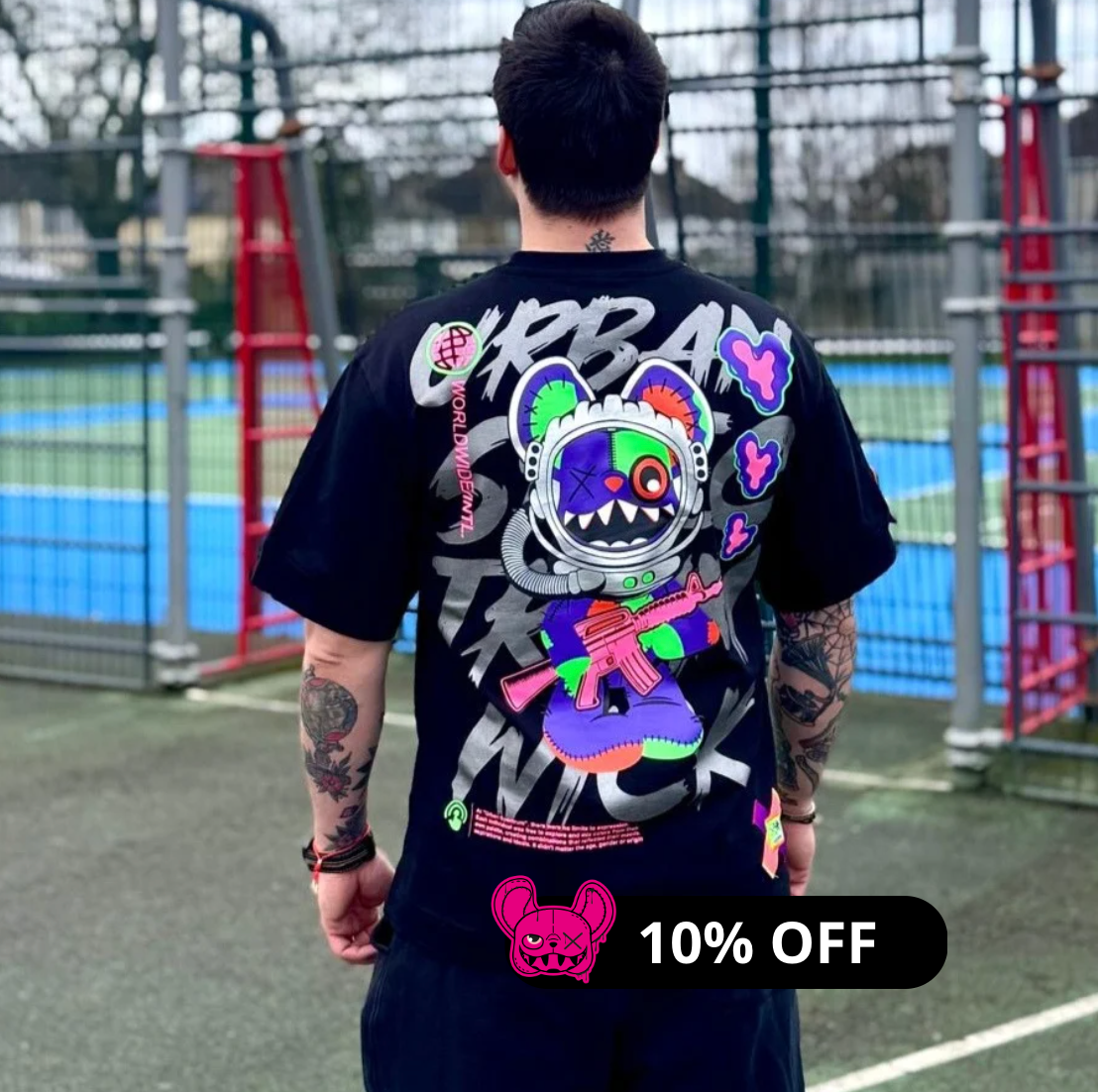 스페이스 러브 오버사이즈 티셔츠로 발사 준비 완료. 우주적인 무드와 대담한 디자인이 만나, 빛나는 것을 사랑하는 Wickers를 위한 완벽한 아이템.