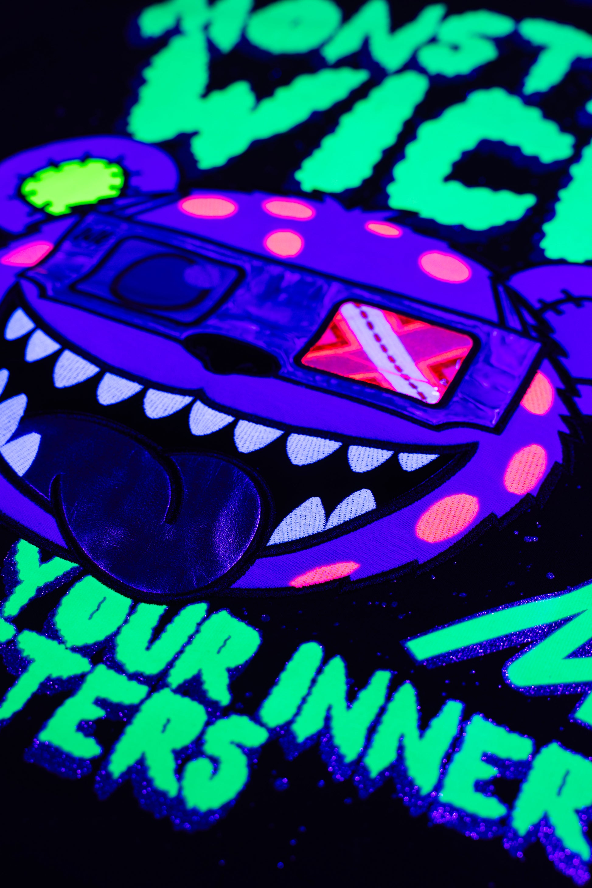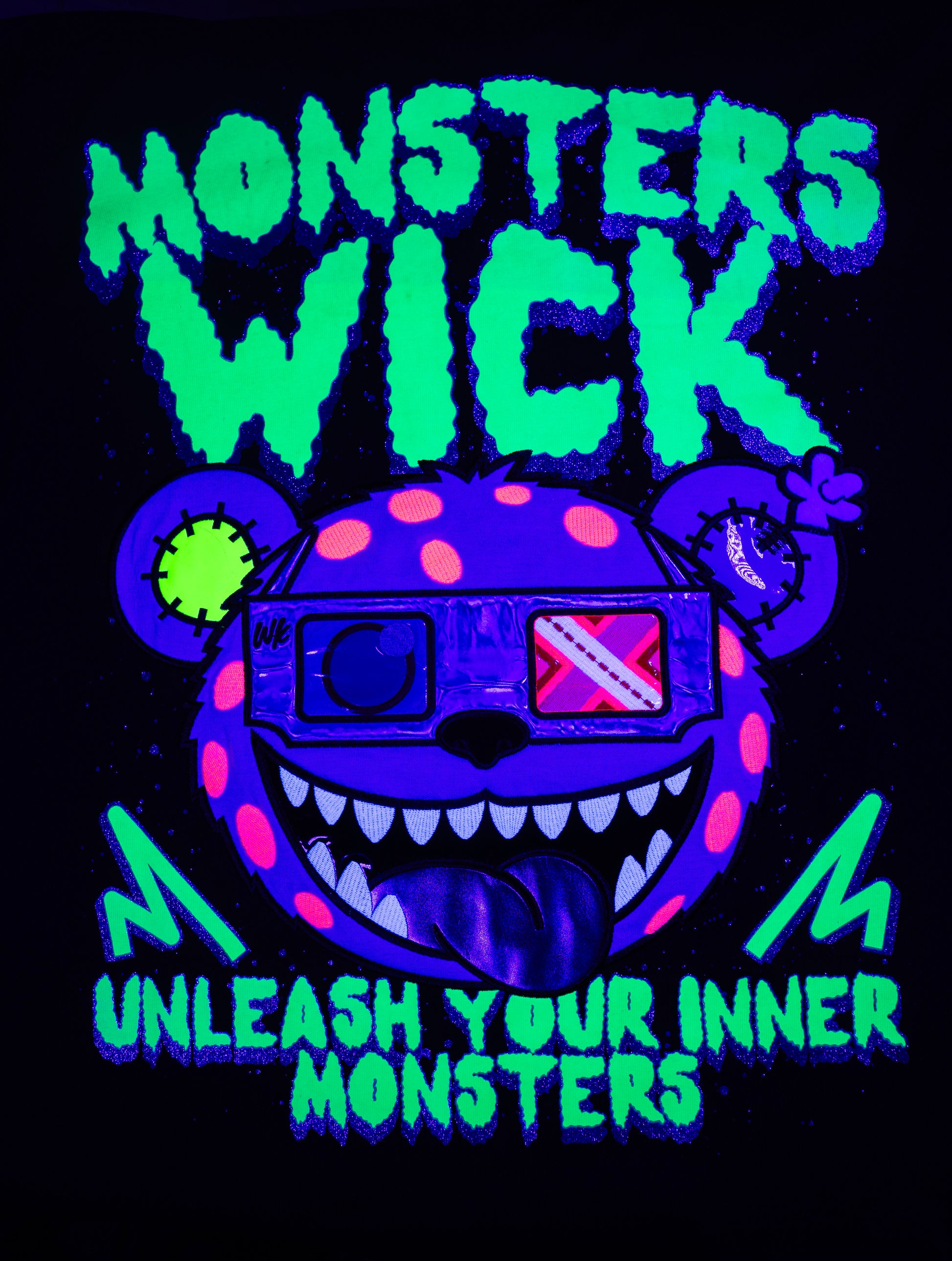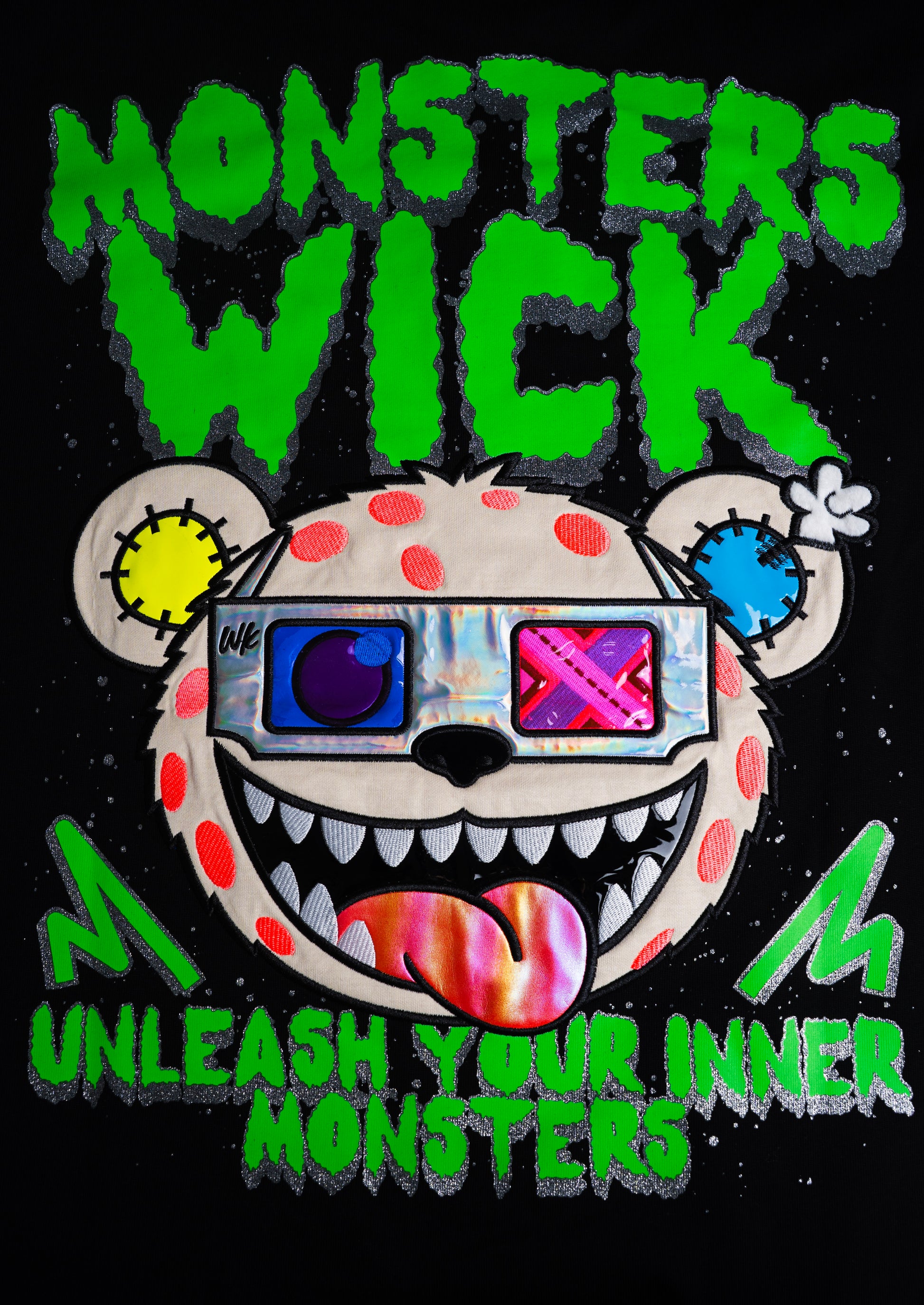 Bright splashes of neon and graffiti details give it that signature Wick Monsters vibe — raw, fearless, and impossible to ignore.