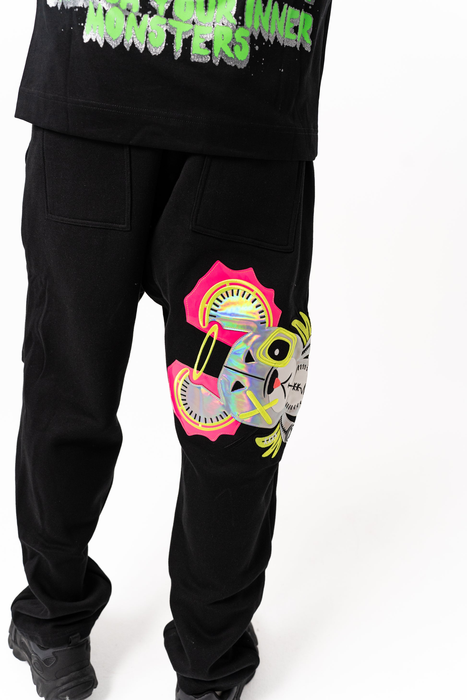 NEON ROYALTY CARGO SWEATPANTS BLACK