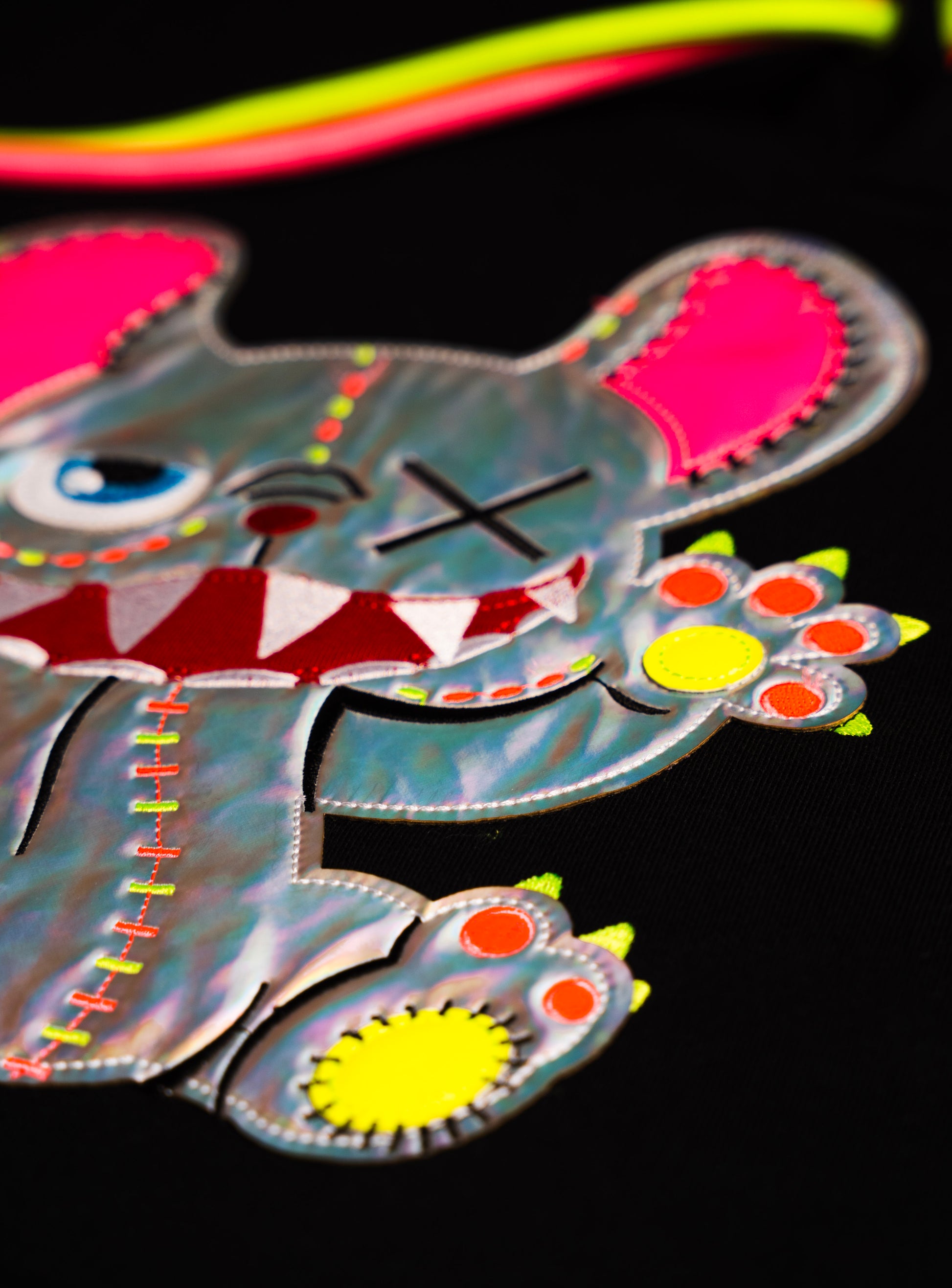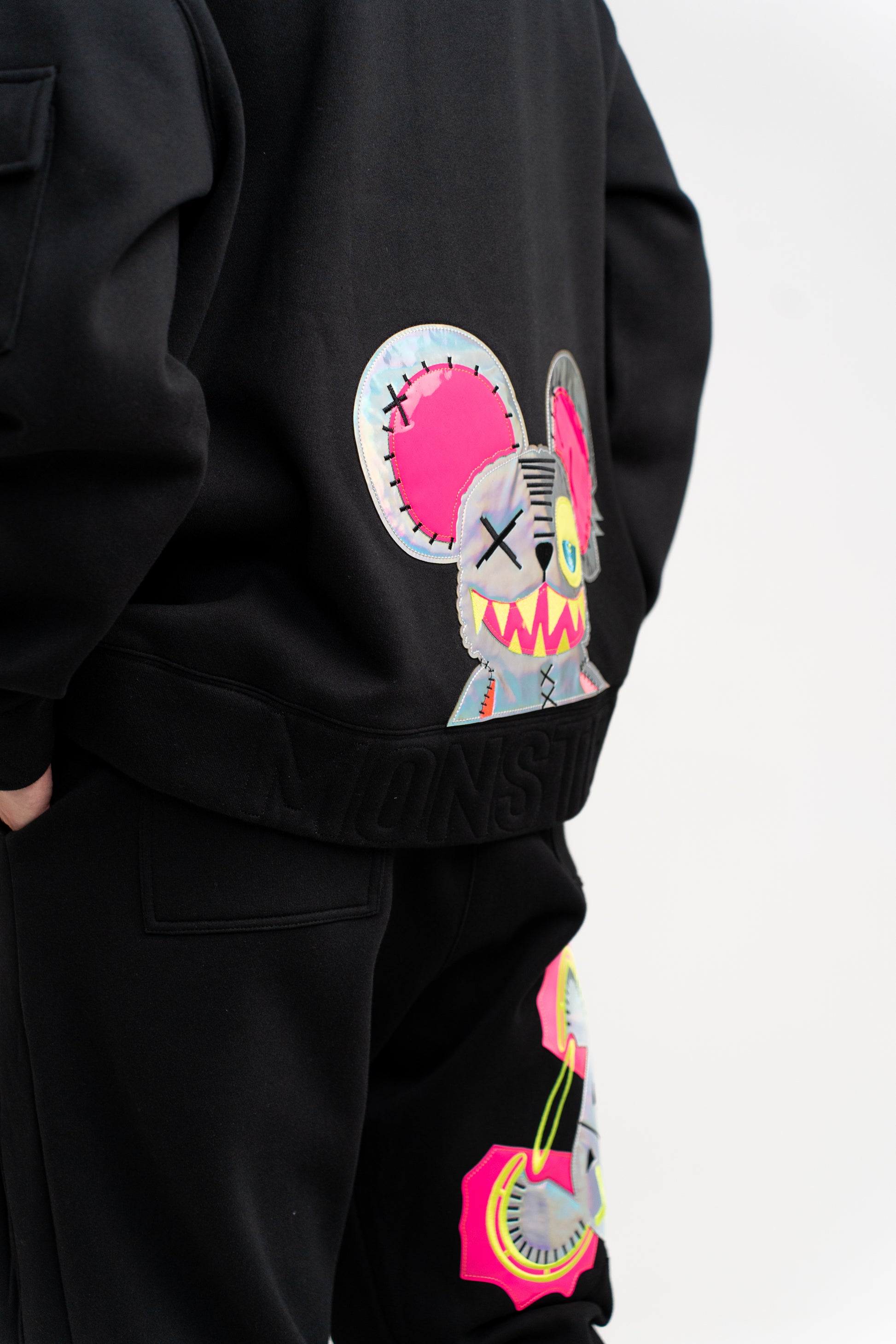 The Neon Royalty Hoodie combines black and white versions with bright neon bear embroidery — the spotlight of the Neon Ice Collection.