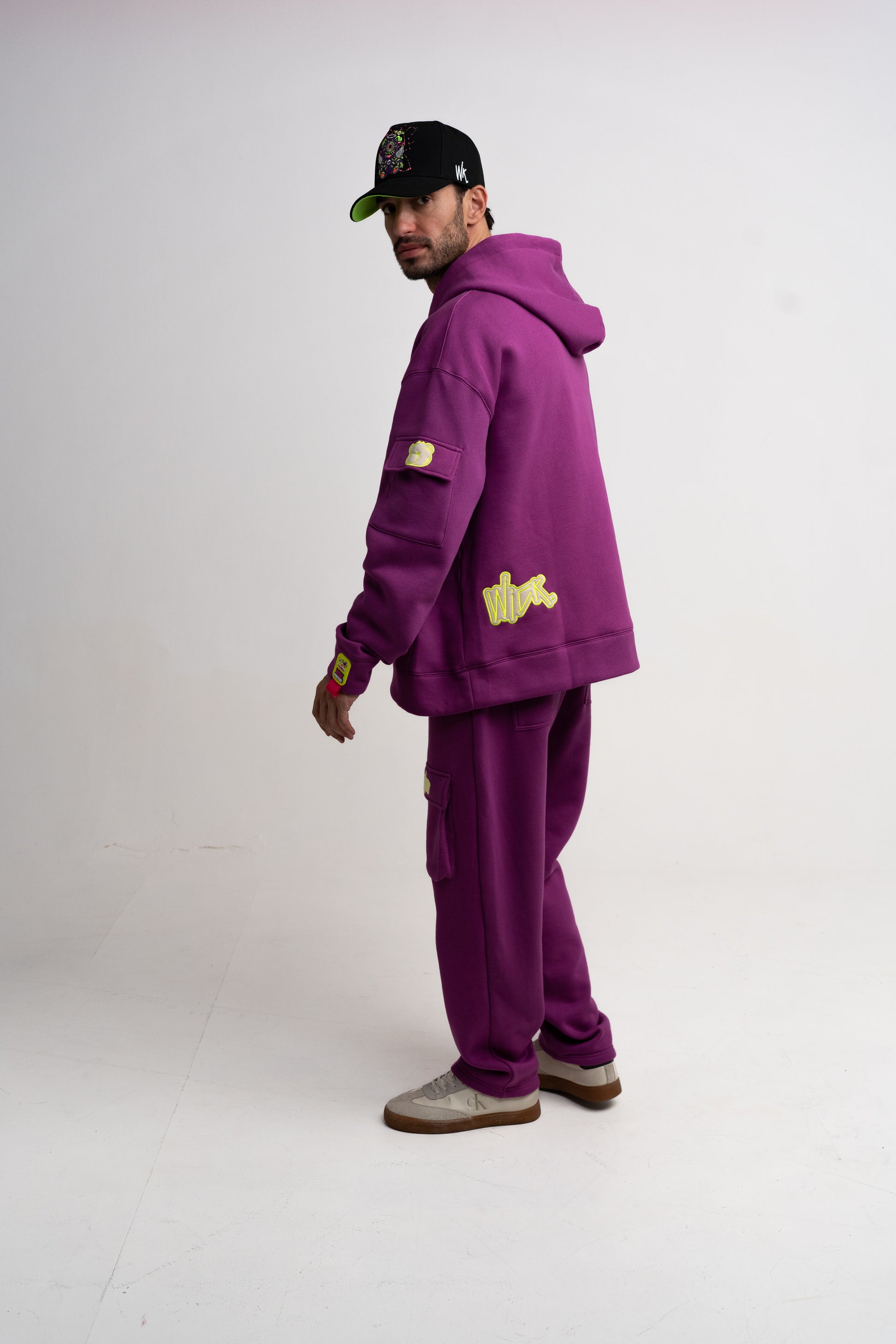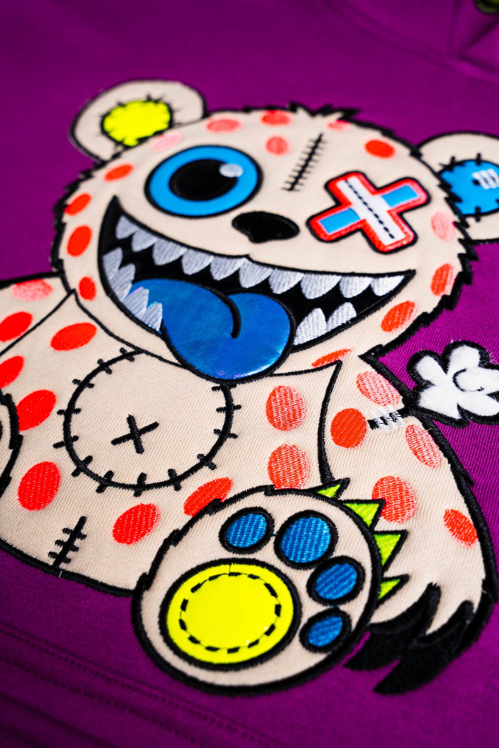 Its signature monster bear embroidery pops in vibrant neon tones, symbolizing playful rebellion. The acid-lime drawstrings, arm pocket detail, and oversized cut make it impossible to ignore.