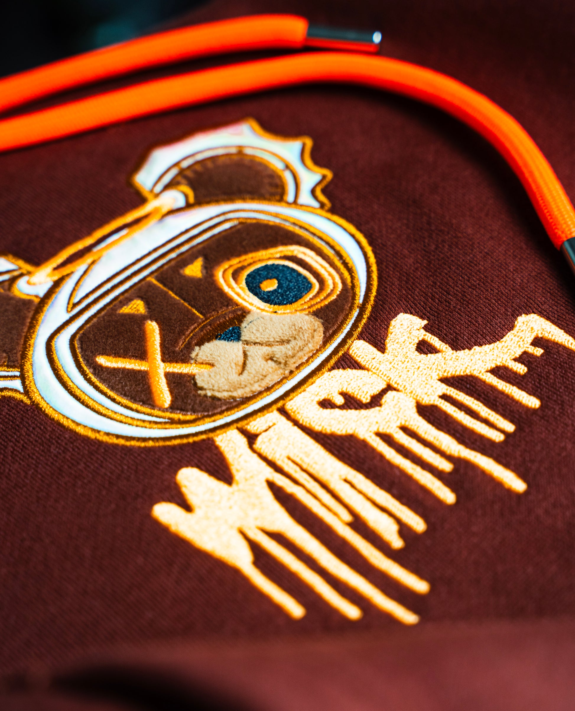 The Space Brown Sweatpants bring the monstrous DNA of WICK Monsters into orbit — featuring our mascot in a high-relief, embroidered space edition with holographic accents. The deep brown base meets vibrant neon orange details, creating a piece that radiates heat, energy, and attitude.