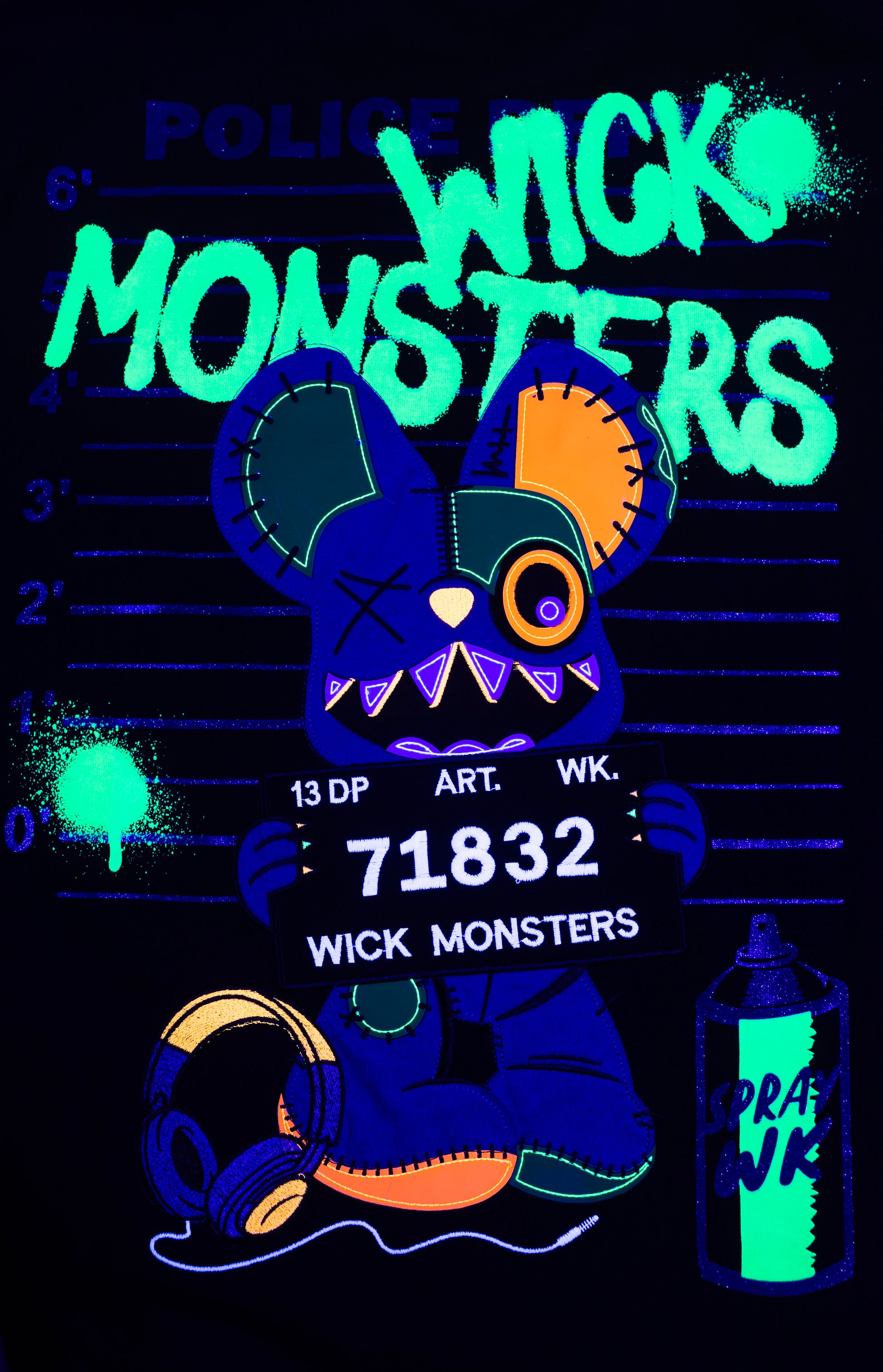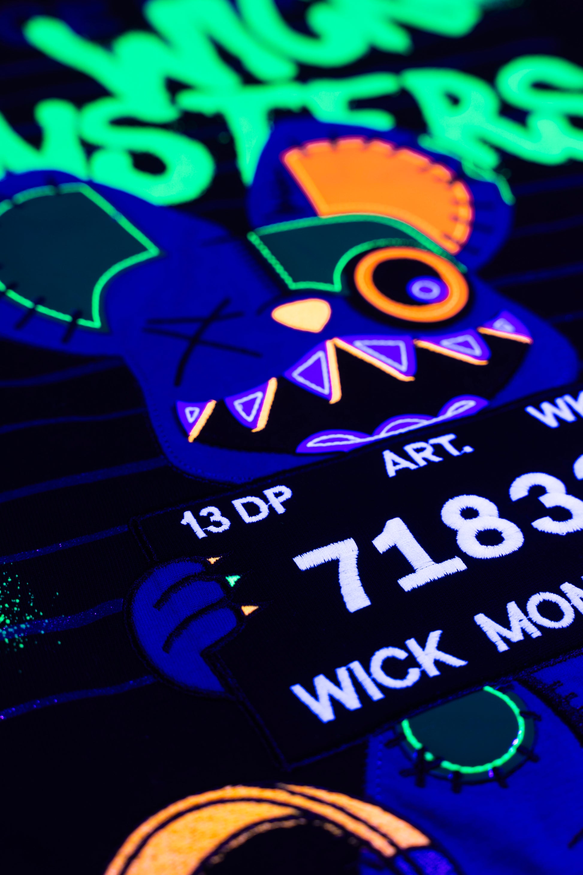 The SWAT Tee merges urban energy with monster identity. Available in both black and white versions, it features hand-drawn monster graphics and neon details that capture the essence of Wick Monsters street culture.